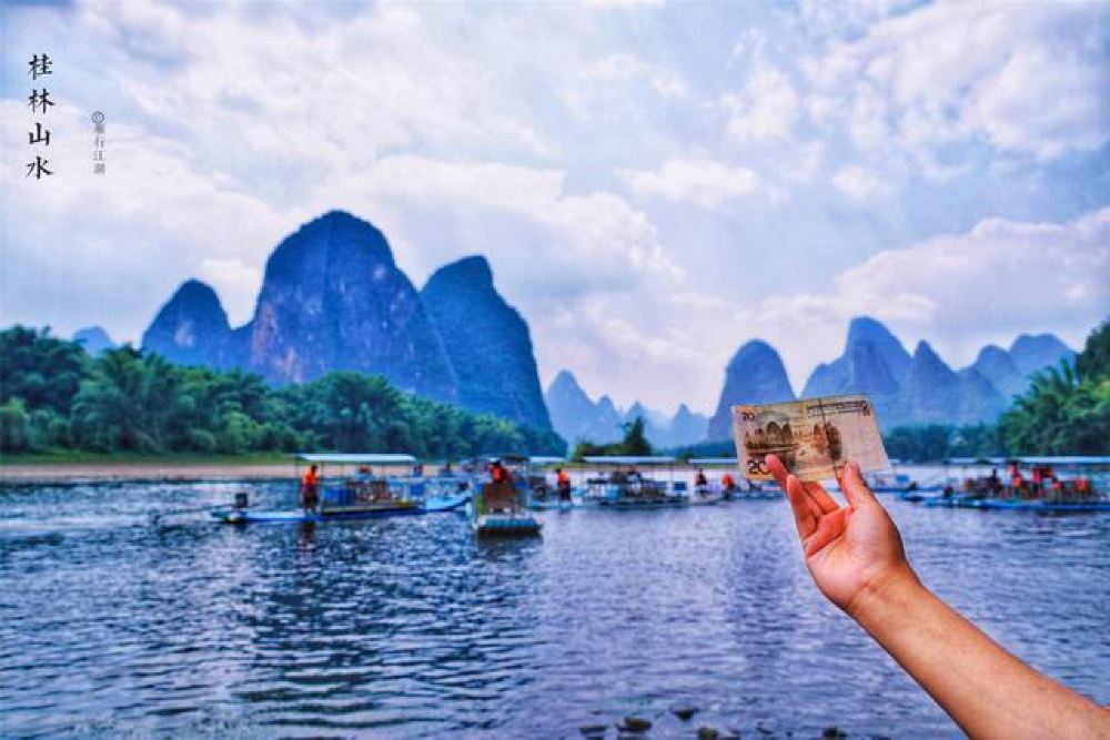 ▲ 兴坪古镇附近漓江的山水是20元人民币的经典背景,阳朔的山峰层叠,风景如画。