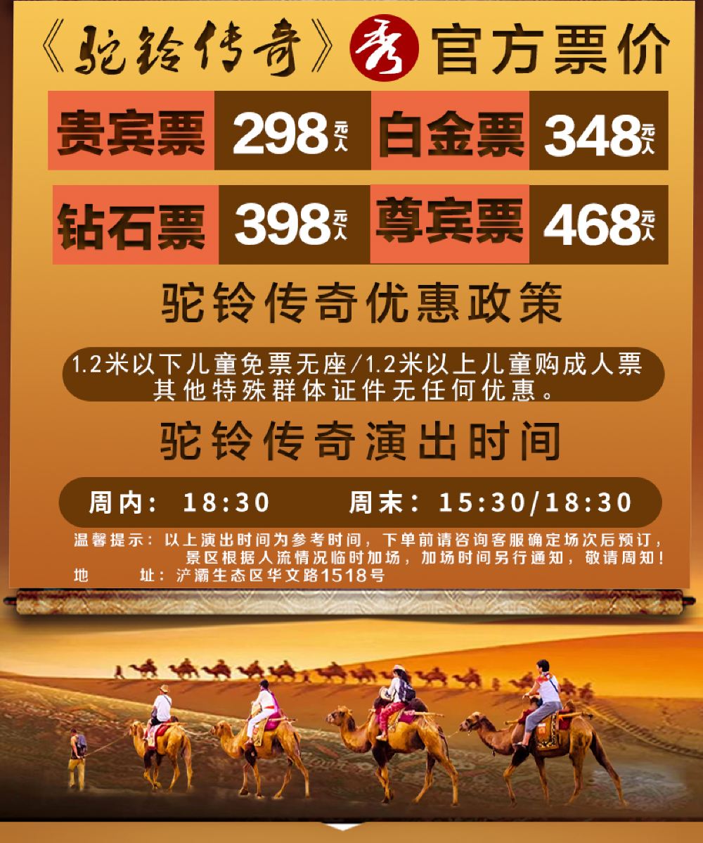西安《驼铃传奇》秀半日游【三环内/专车接送/或演出座位升级】【【省心出行】三环内酒店,安排专车上门接送,专车直达华夏文旅度假区,让您省心出游。】
