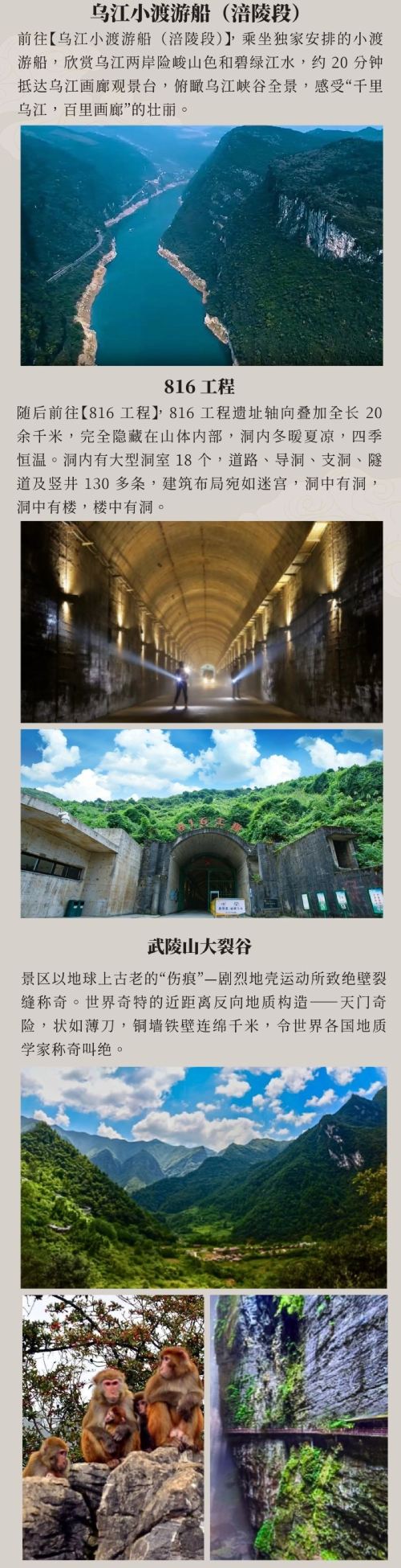 重庆大裂谷+816 工程+乌江小渡游船2-8人含车一日游【提供主城多区域商圈上门接客(范围:主城重要商圈上门接 解放碑 观音桥 南坪商圈)】