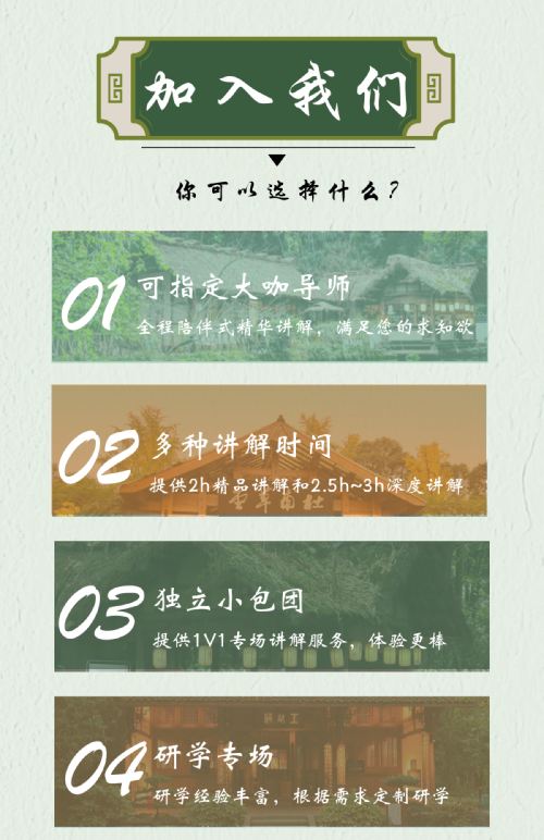 【专业度】:国家高级导游是我们团队的标配,以字正腔圆的普通话,良好的职业形象,为您提供专业的讲解服务。