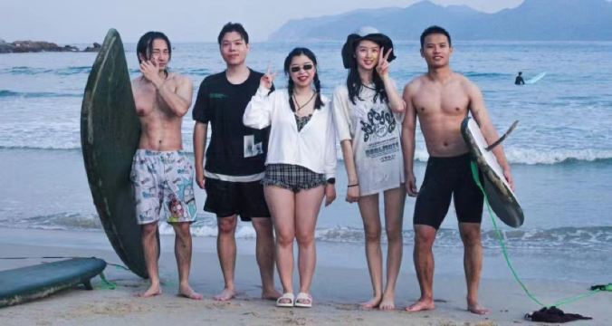 教学内容:冲浪入门知识、冲浪规则和礼仪、陆地冲浪平衡训练、趴板训练、划水技巧、起乘技巧、站板训练、教练推板练习、强化练习
