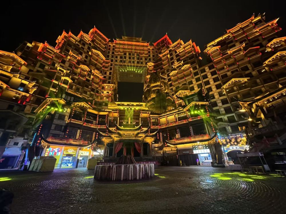然后,来探索张家界璀璨的新地标——土家族七十二座高脚楼(又称七十二奇塔)。这座令人惊叹的建筑奇观不仅仅是地标,更是张家界充满活力的文化中心。夜幕降临,真正的魔幻之旅才刚刚开始。准备好迎接一场难忘的户外文化盛宴吧!欣赏一场光影、音乐和舞蹈交织的精彩演出,感受土家族古老传说的鲜活呈现。观看引人入胜的火焰表演,聆听动人的民间故事,融入这充满活力和激情的氛围。不要只是到此一游,而是来体验一番。土家族七十二座高脚楼将为您带来一个充满奇观、美食和地道文化的难忘夜晚。