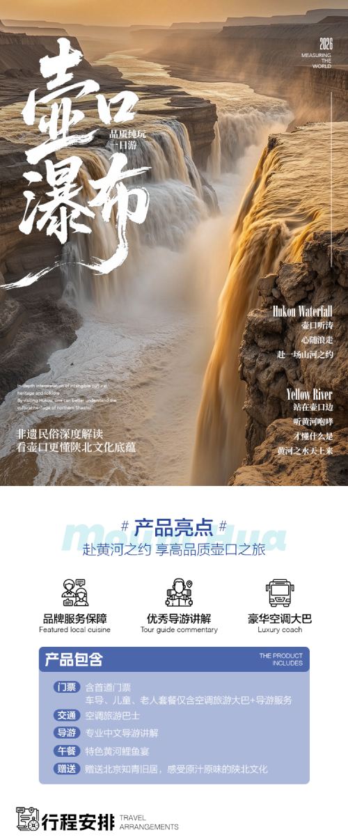 陕西壶口瀑布一日游含中餐+赠汉服体验【[三环内免费接早]西安市区三环内提前联系接早。】