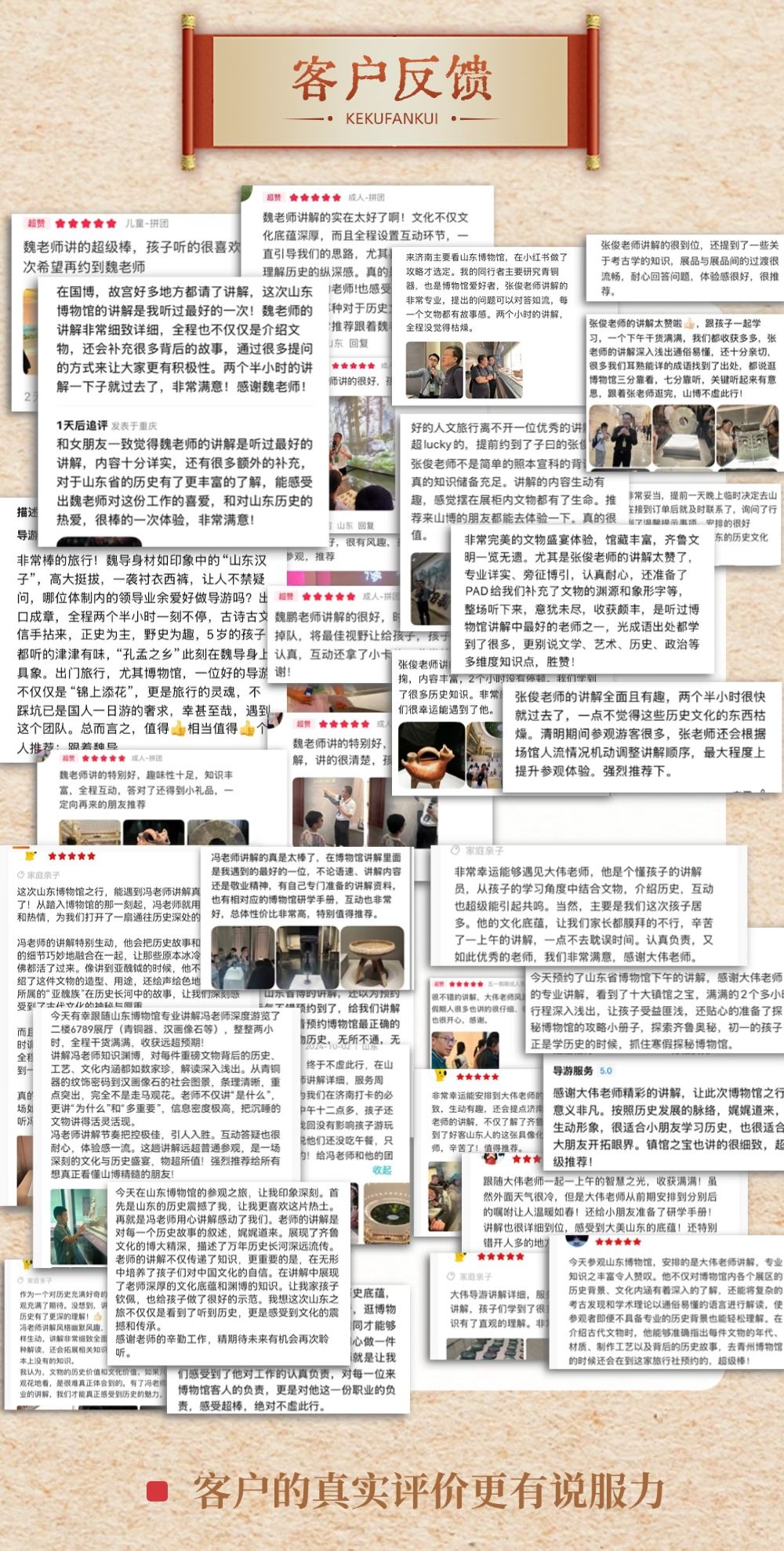 ●(山东博物馆每周一闭馆)此产品是按照人数需求下单,选择链接套餐下单即可,请您下单前咨询客服各个场次是否还有余位!下单后请告知客服姓名电话。