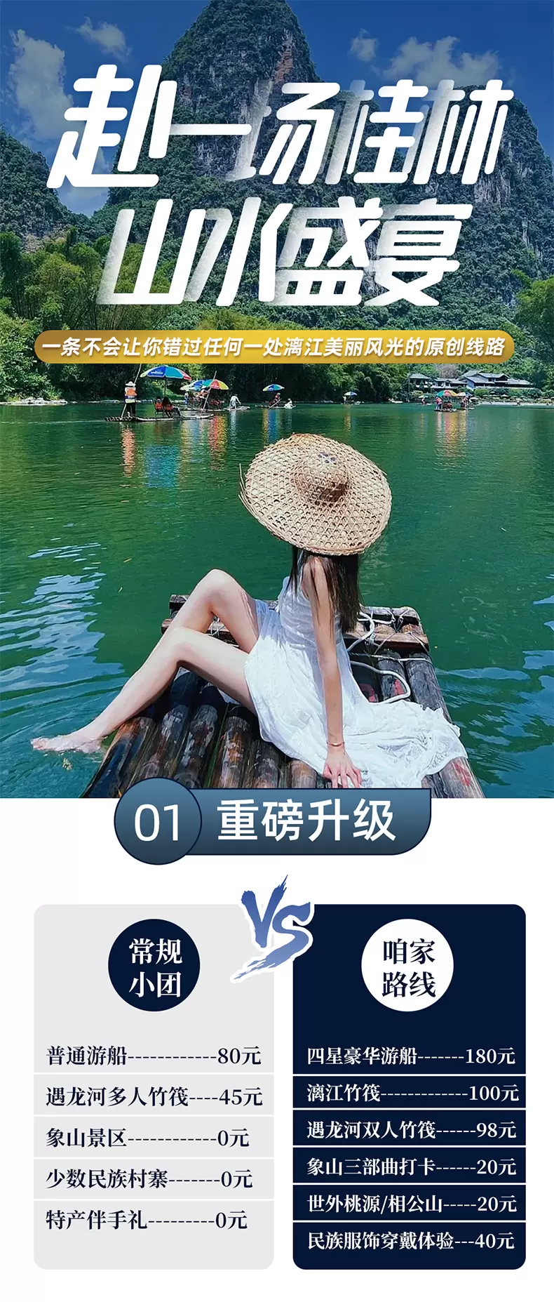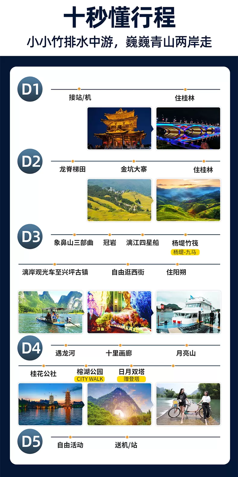桂林阳朔+龙脊梯田+兴坪古镇+漓江四星游船五日游【佳游纯玩~漓江三游+20元背景地+双人竹筏|20人团】