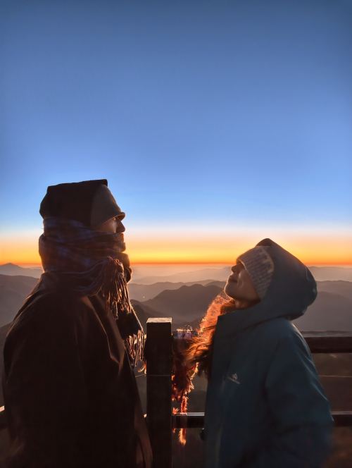 7:30 登顶,打卡,拍美片,等待日出,看云海;