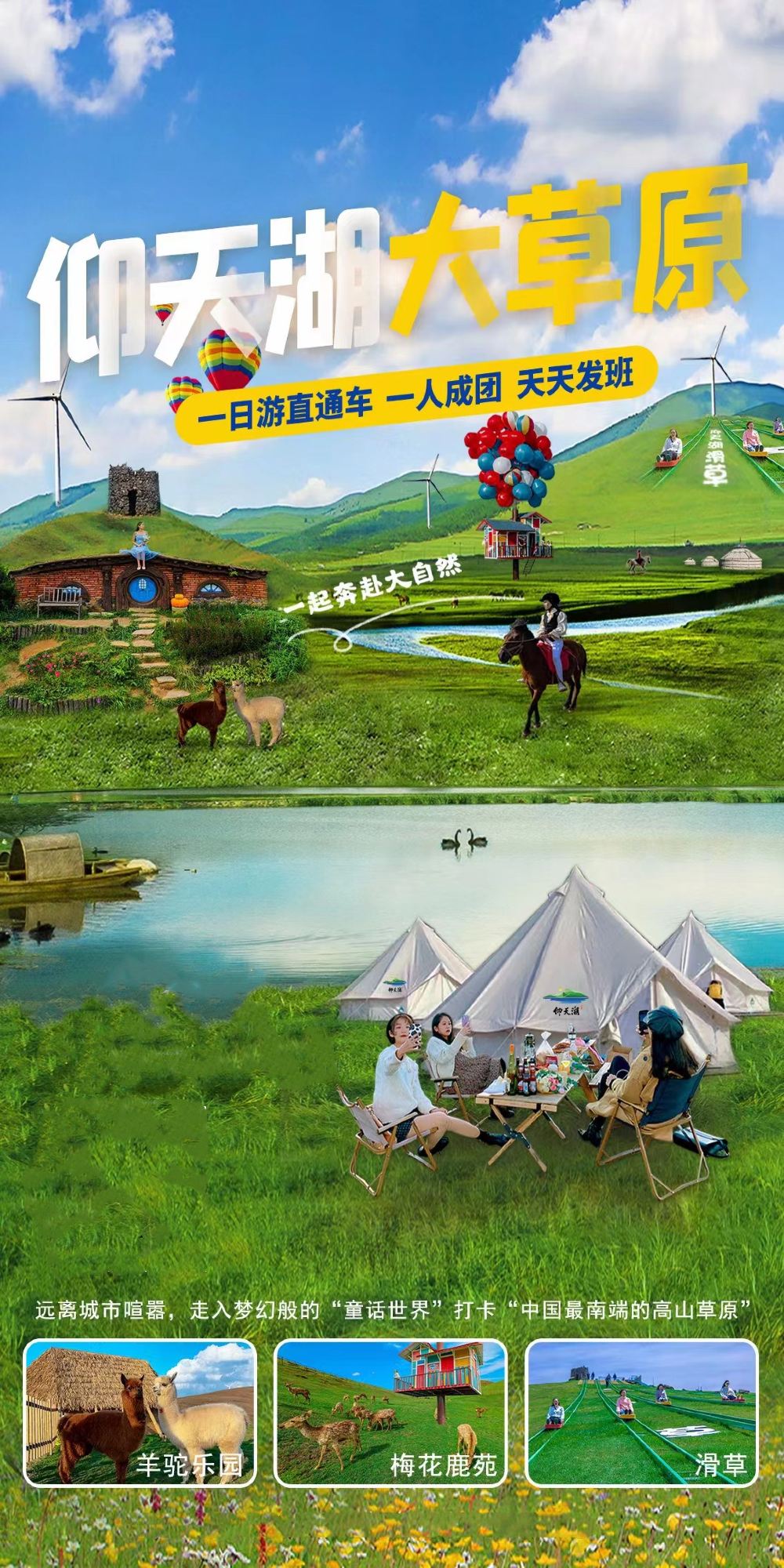 仰天湖大草原一日游【含门票+车费 中餐厅拍摄地】【远离城市,走入如诗如画般的“世外桃源” 打卡南方的“呼伦贝尔草原”】