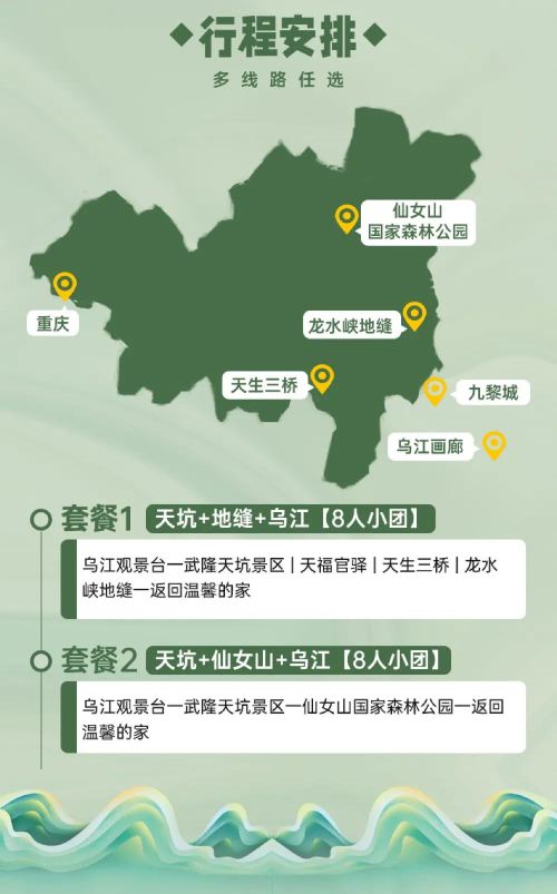 【8人团】重庆武隆天生三桥+龙水峡地缝/仙女山乌江纯玩一日游【[更舒心]纯玩小团无购物不进店,景区直达免换乘。】