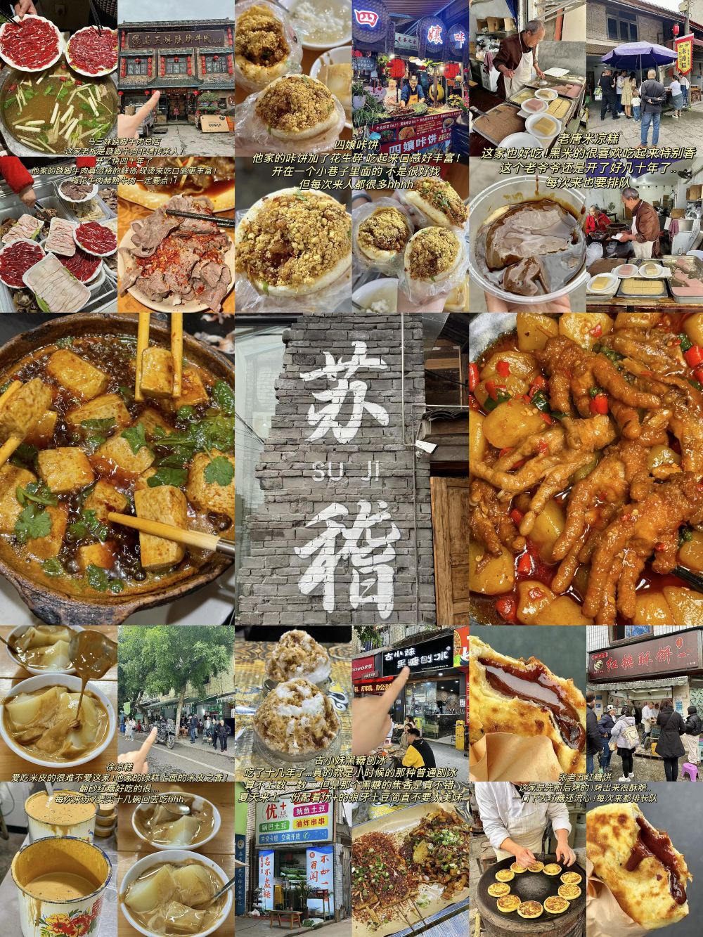 ▲ 特色美食 跷脚牛肉:苏稽古镇是跷脚牛肉的发祥地,这里的跷脚牛肉汤色碧清,香味绵长,牛肉脆嫩。推荐店铺有周记跷脚牛肉、老石桥跷脚牛肉、小杨跷脚牛肉等,除了牛肉,还可以搭配血旺、火爆脆肠、粉蒸肉等菜品。 豆腐脑:苏稽的豆腐脑也是特色美食之一,勾的芡汁很浓稠,搭配粉条、牛肉、肥肠等食材,再加上油辣椒等调料,味道十分鲜美。成名豆腐脑、李记豆腐脑、雷老五豆腐脑等都是不错的选择。 红糖酥饼:以张老七红糖酥饼为代表,现烤现卖,皮子酥脆,一口就能咬到滚烫的红糖,稍微用手挤就会爆浆,香甜可口。 咔饼:四嬢咔饼内馅