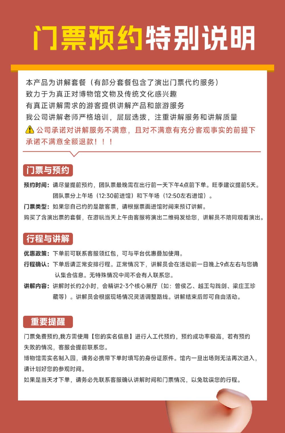 本套餐为小包团讲解套餐,我司将按您下单需求为您提供一对一或者一对多的人工讲解服务2小时,以及门票预约服务;