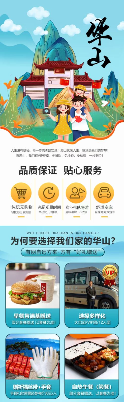 1华山如遇大风等不可抗因素,当天景区临时通知索道停运情况,景区未产生的费用可按照旅行社标准可退,产生的往返车费不退费。还望知晓并谅解。