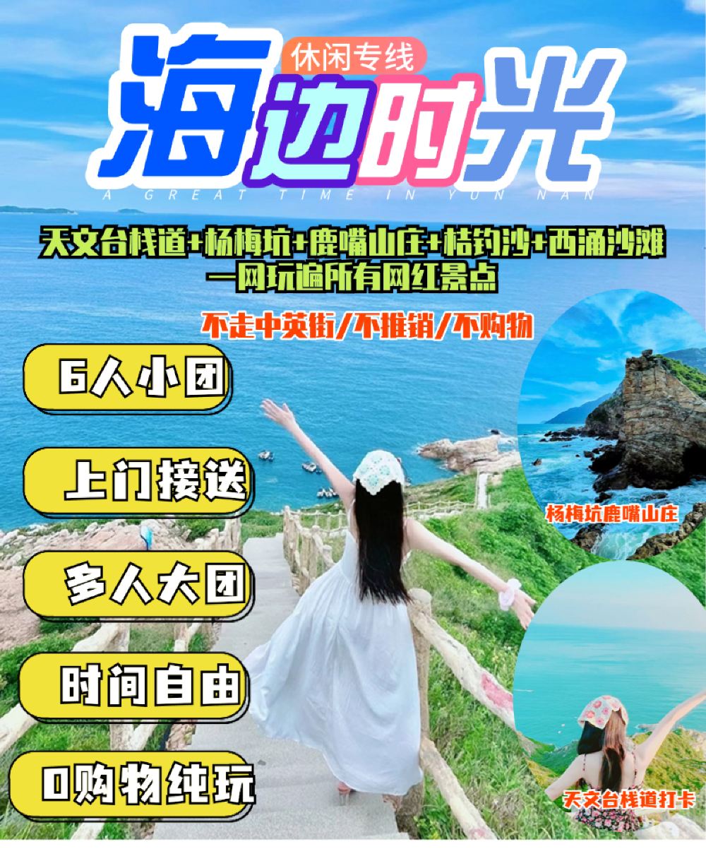 杨梅坑深圳市天文台海滨休闲鹿嘴人鱼岛桔钓沙+多套餐可定小团【纯玩无购物不走中英街、一天玩遍深圳网红核心景点!人生必走天文台栈道拍照打】