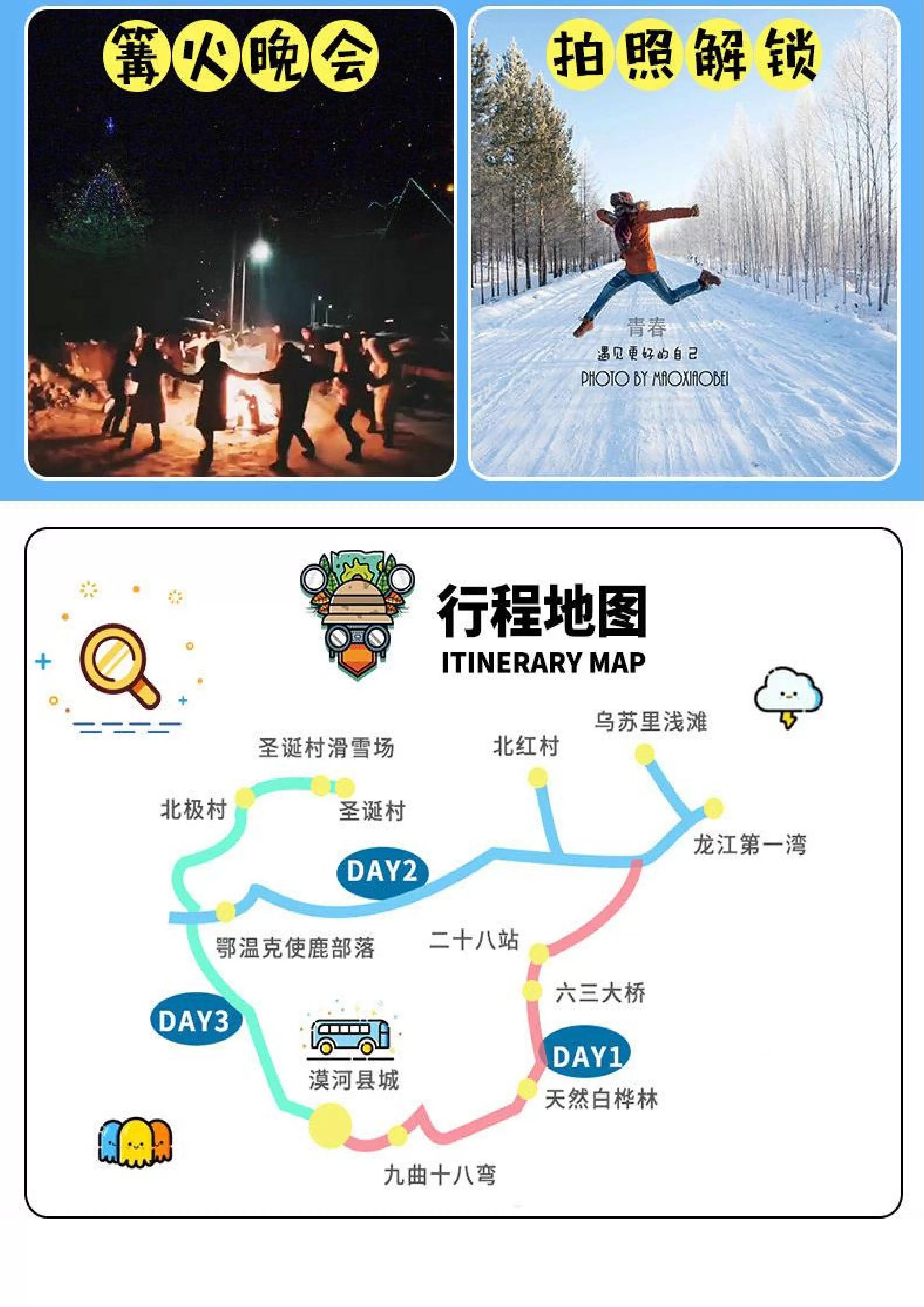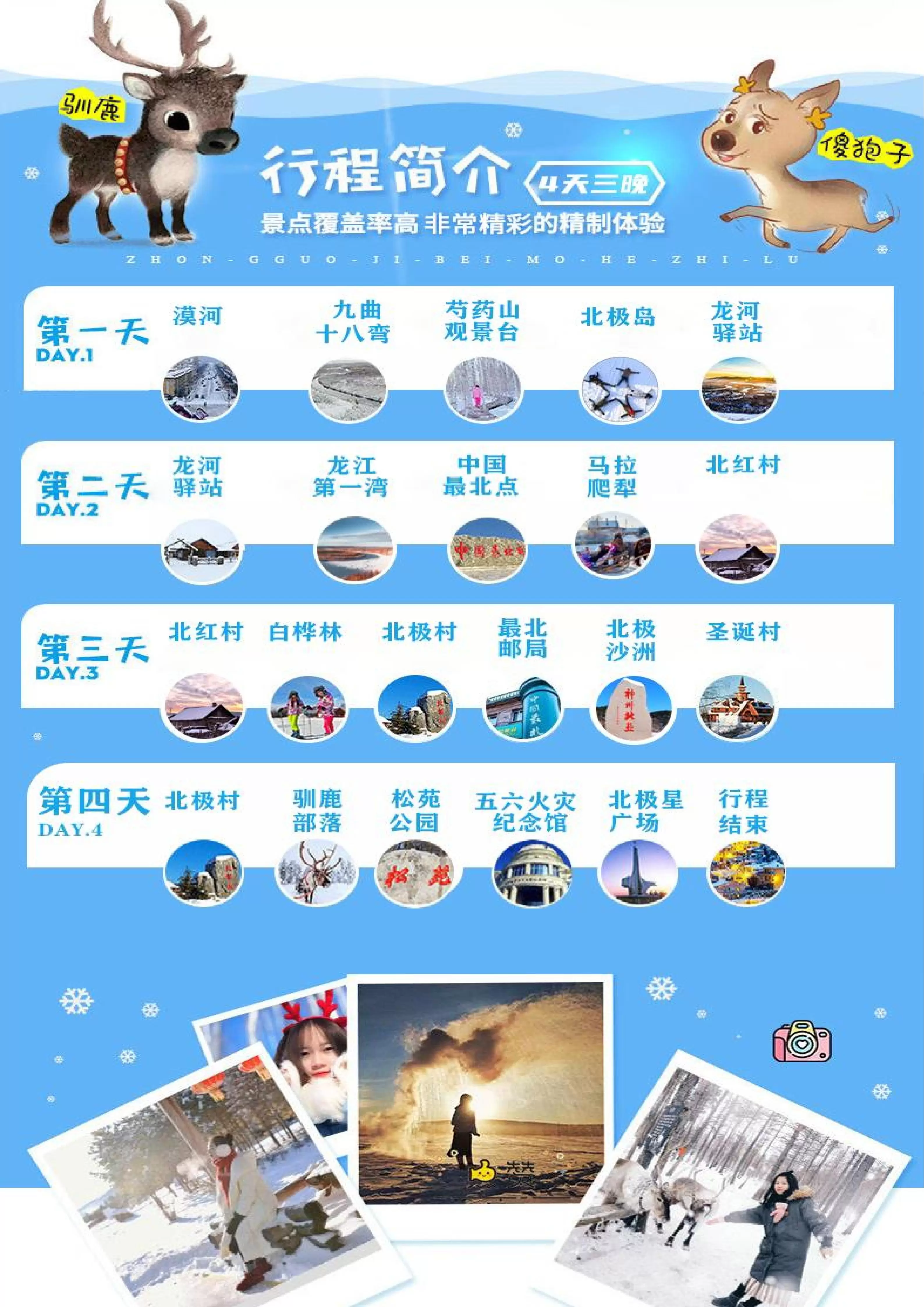 踏雪寻北丨漠河全景+北极岛4日纯玩【私家专享,一单一团不拼人!九曲十八弯+北极村+北红村+圣诞村丨免费接送站】