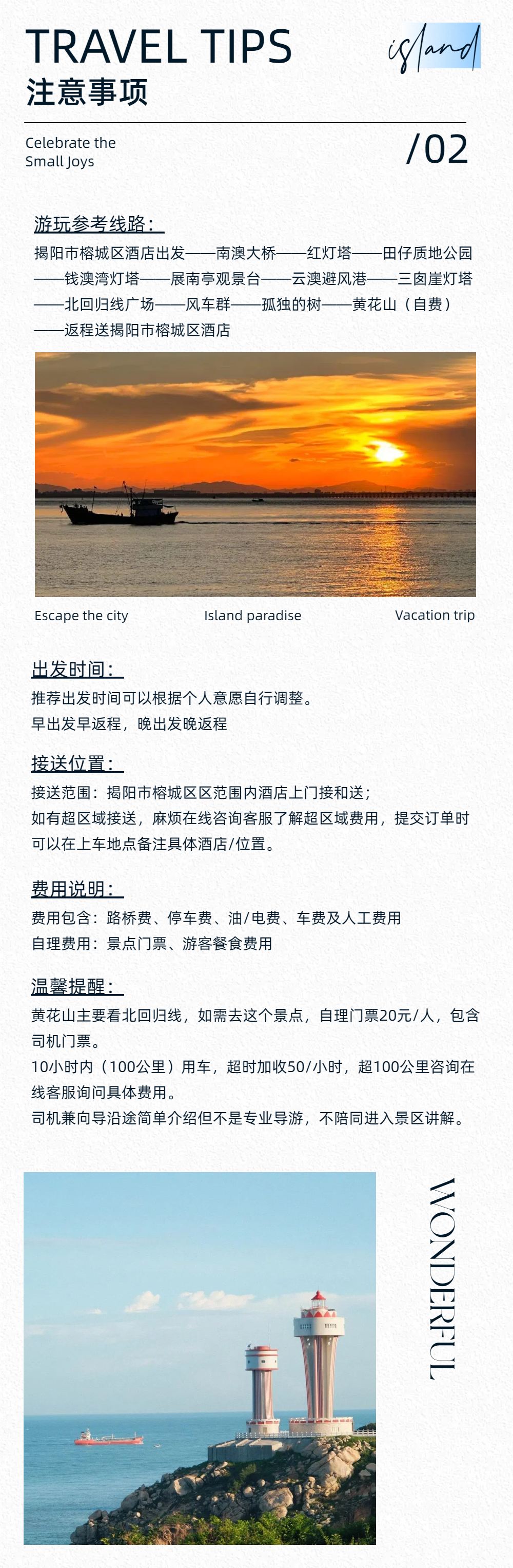 揭阳市区出发南澳岛10小时包车快速打卡【含过桥费+司导服务】【跨海飞桥揽南澳,十小时快意环岛行。可潮汕站/潮汕机场直接出发南澳岛不加费用!】