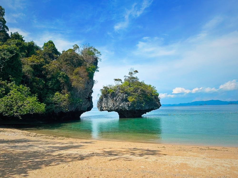 ▲ ● 帕克比亚岛 宁静的双岛,拥有清澈湛蓝的海水 洁白的沙滩,绿树成荫 退潮时,会露出沙洲,您可以漫步于岛屿之间,欣赏形似蘑菇的石灰岩地貌——这里是热门的拍照地点