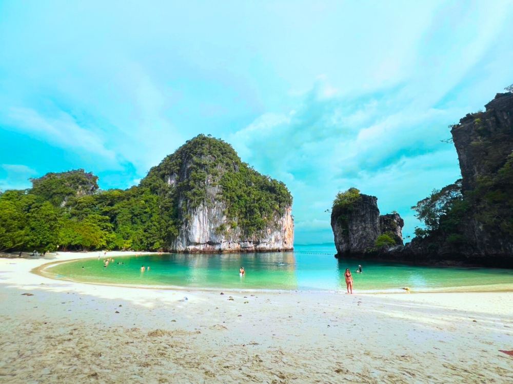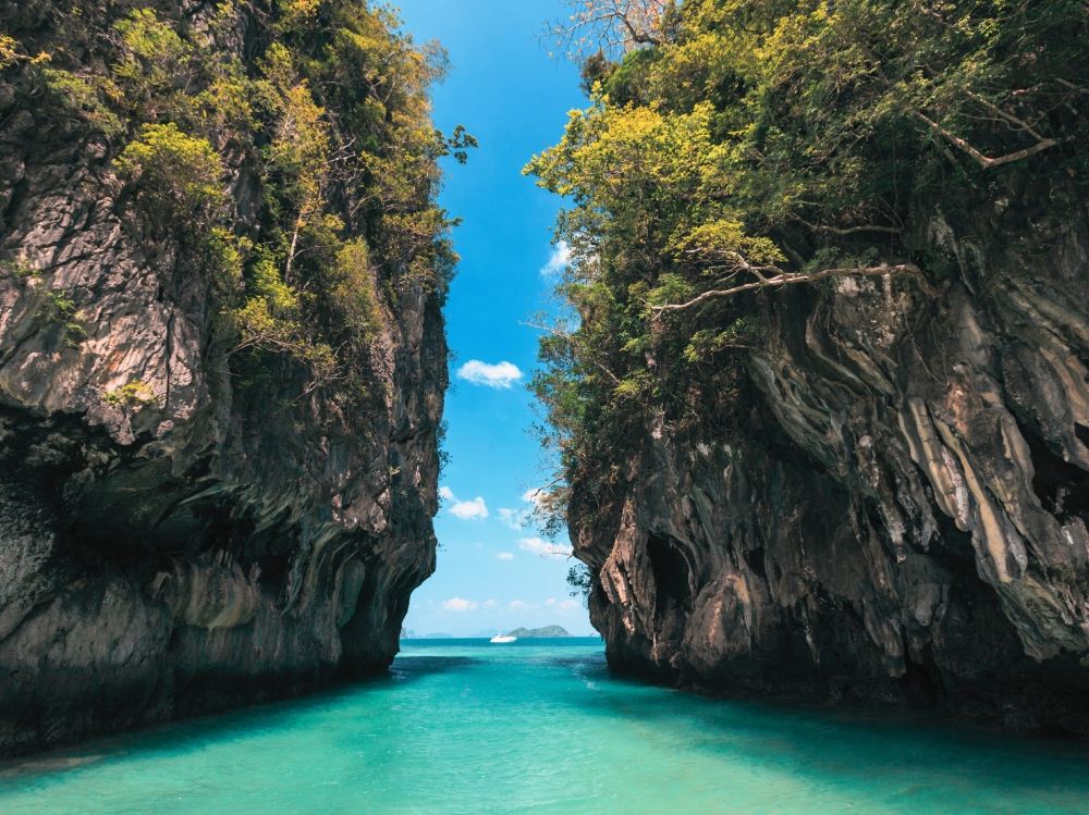 ▲ ● 泻湖(洪泻湖) 惊叹于被高耸石灰岩峭壁环绕的隐秘碧绿泻湖 在平静碧绿的湖水中畅游 别错过以红树林和悬崖通道为背景的**照片。