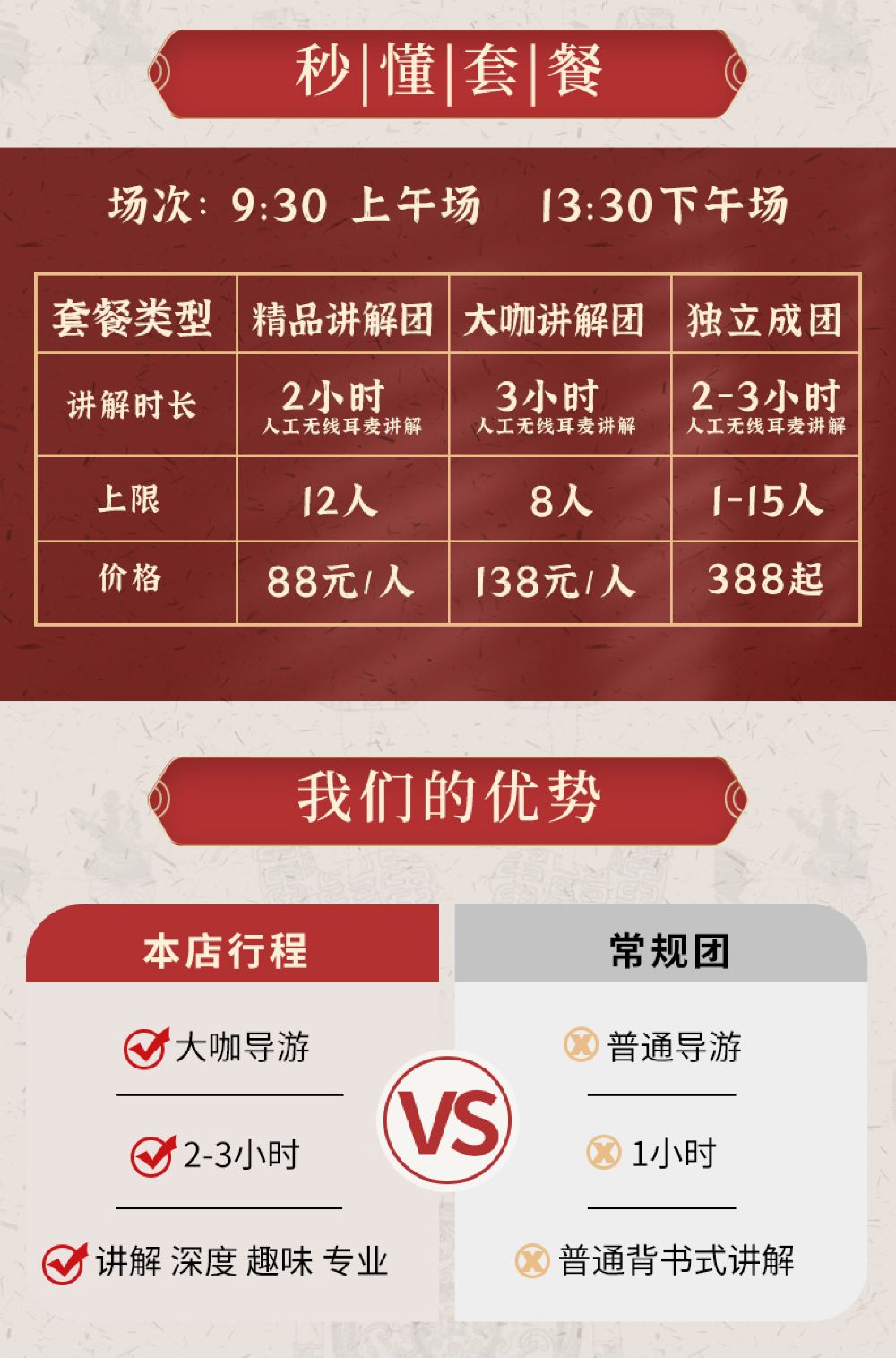 3、7月和8月暑期以及节假日,拼团讲解人数20人左右;