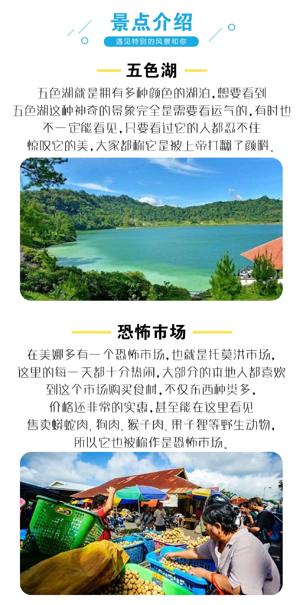 印度尼西亚万鸦老+恐怖市场+马哈武火山【美娜多五色湖白水河】【可独立包团,专车专导,市区上门接送,适合公司、家庭出游】