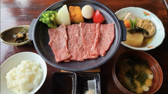▲ 午餐亮点包含飞驒牛、A5 等级神户牛、飞驒猪肉,以及搭配五箇山豆腐的素食关东煮,所有餐点皆在传统木屋中享用。 飞驛牛肉,来岐阜不可错过的上等飞驛牛,乃是经过14个月以上肥育的黑毛和牛,肉质细腻,入口即化,作为牛肉中的艺术品,不论是牛排、汤锅都是味觉享受。