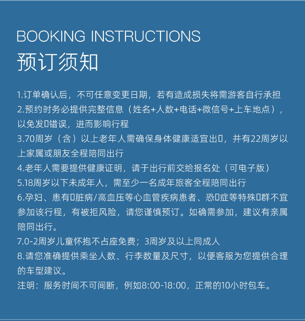 包车行程可自定,直接和司机沟通即可,也可以参考以下行程: