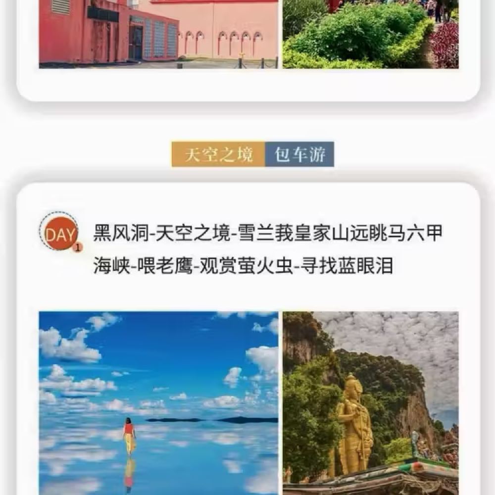 - 天空之境半日游:吉隆坡市区出发-天空之境-吉隆坡市区/吉隆坡市区出发-老鹰补食-蓝眼泪-萤火虫返回吉隆坡市区