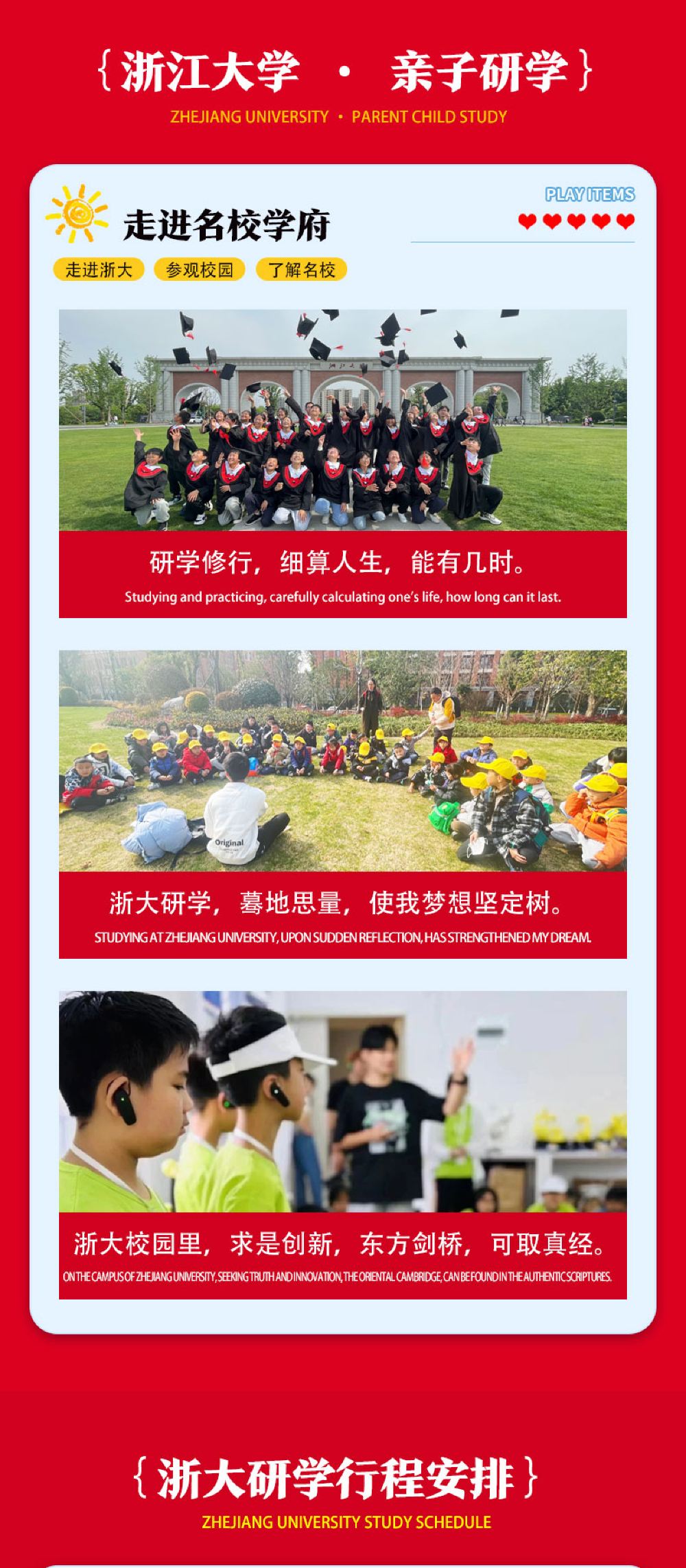 浙大校史馆,了解浙大的前世今生;/或安排浙大金工科技大楼讲解,了解浙大科技的力量。