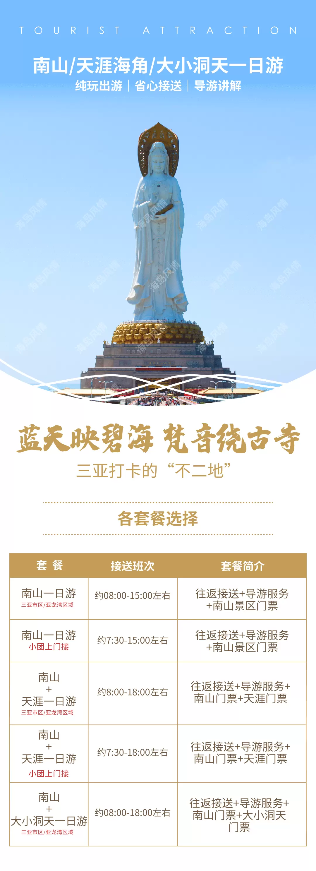 三亚南山文化旅游区+天涯海角+大小洞天一日游【108米海上观音+抱佛脚+往返接送】