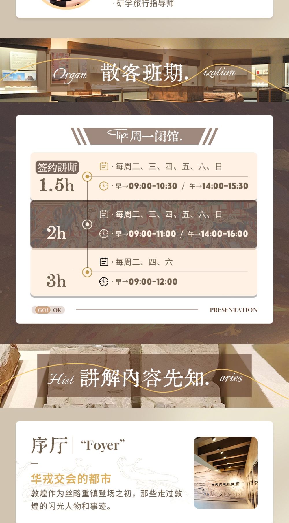 通常情况,敦煌博物馆周一闭馆;讲解活动在敦煌博物馆进行