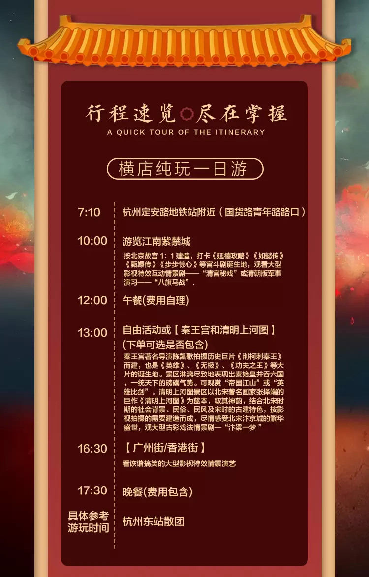 横店影视城+广州街香港街+秦王宫景区+明清宫苑景区一日游【纯玩上门接】