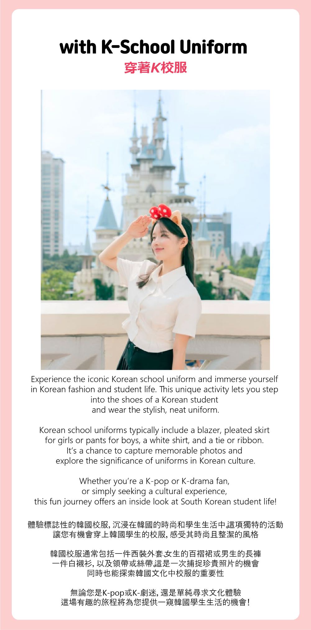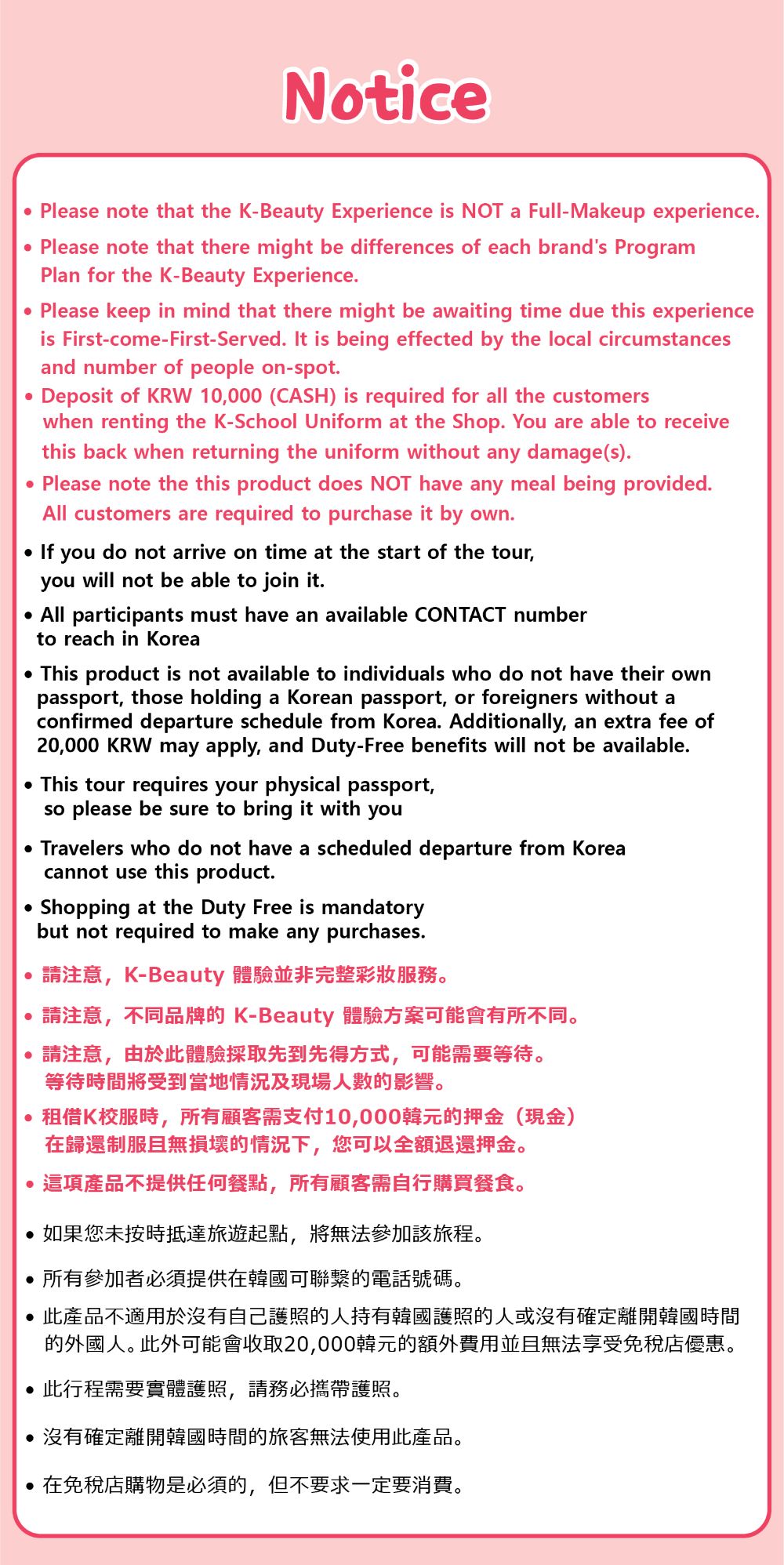 ※ 所有参与者必须在预订信息中注明可在韩国联系到的有效联系电话号码。
