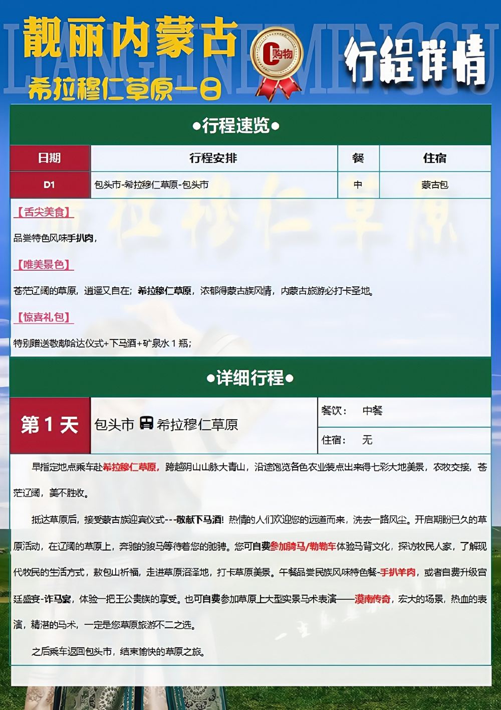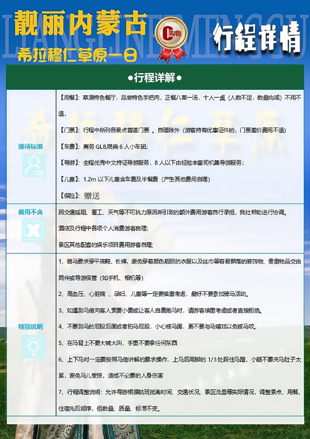 希拉穆仁草原6人小团一日游 | 纯玩无购・全程司导・铁定发车【一人也成团,拒绝转拼转卖!专车专导全程专属服务,告别 “套团” 烦恼,高速直达景区,把时间留给风景】