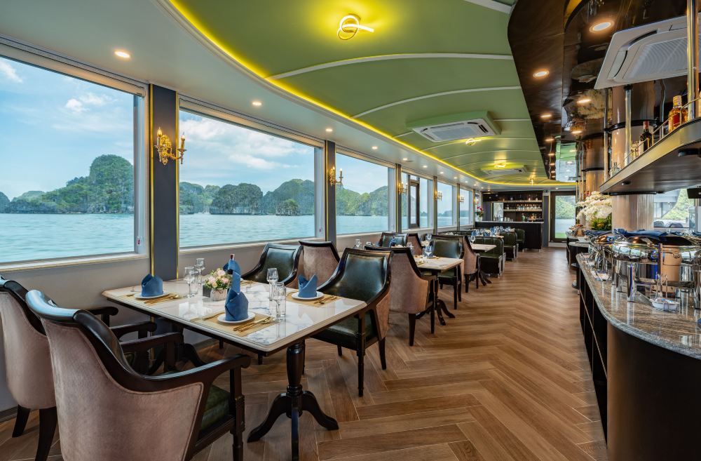 开始巡航,享用特色午餐,品尝众多越南籍传统菜肴和广宁省新鲜著名的海鲜菜肴,同时游轮在浪漫的海浪上缓缓滑行。