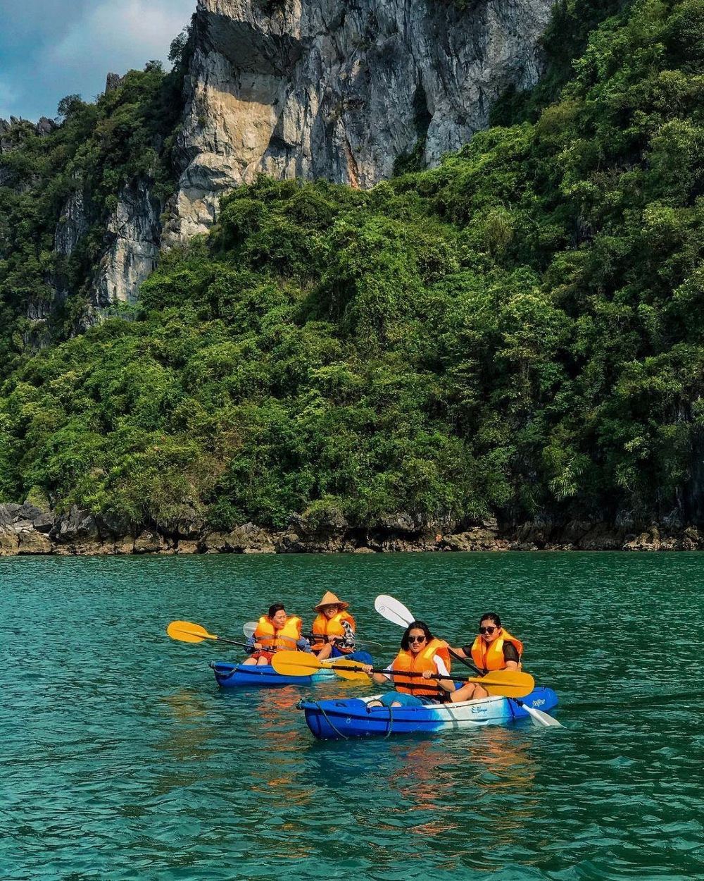 在卢昂洞,游客可以享受皮划艇、乘坐竹筏等活动,也可以在游船上放松身心。