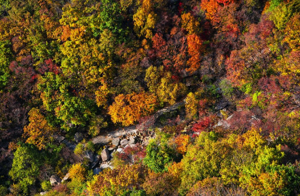 ▲ 林间的深红、浅橙、明黄和墨绿又让你胸中泛起深深的美感