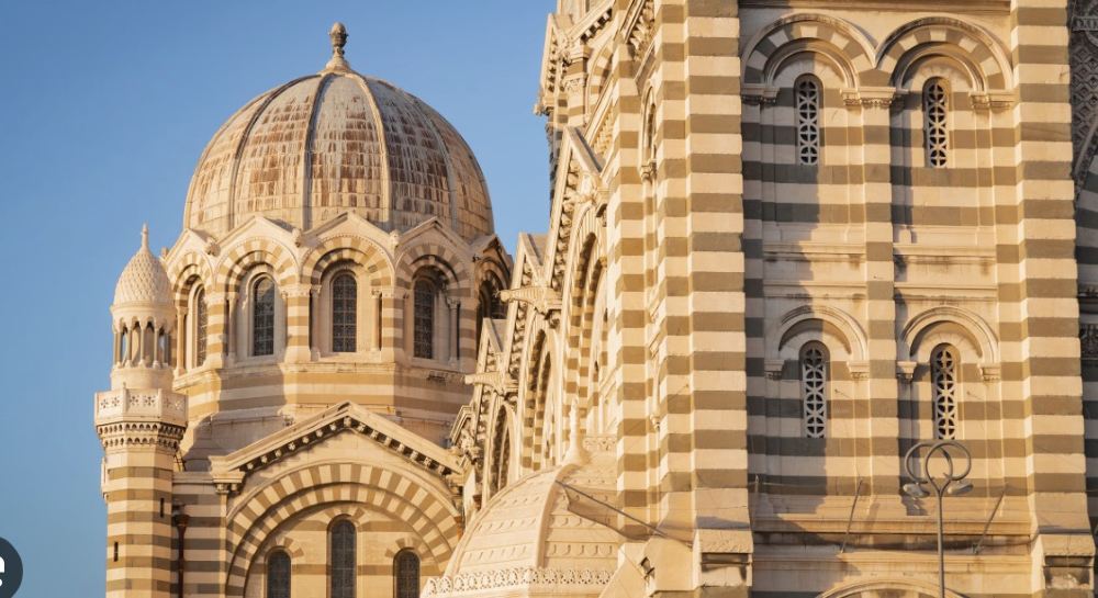 ▲ 马赛主教座堂,正式名称为圣玛丽大教堂(Cathédrale Sainte-Marie-Majeure),是法国马赛重要的宗教建筑之一,也是一座融汇了历史、文化与艺术的壮丽建筑。它位于马赛老港的西侧,俯瞰着蔚蓝的地中海,风景和建筑的结合堪称完美。 马赛主教座堂的建设始于1852年,完工于1893年,历时40多年。这座教堂的建筑风格融合了拜占庭与罗曼式元素,典雅而雄伟,是19世纪法国宗教建筑的代表之一。