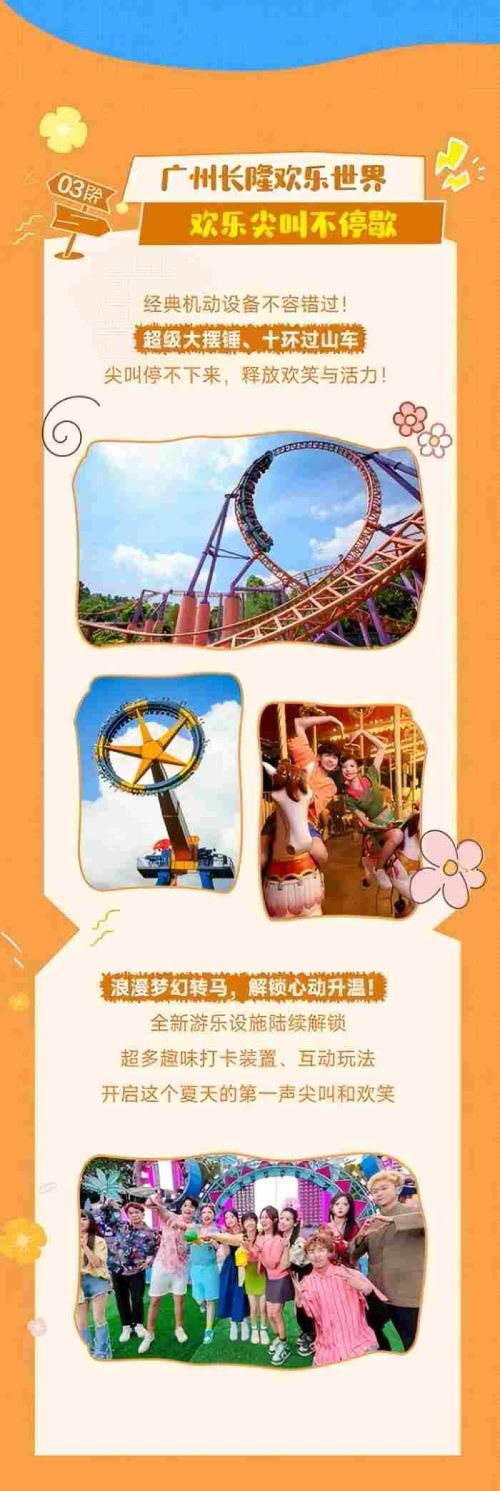 @游玩建议:带娃家庭就先冲三个新设备,魔力秋千、星际战舰、飓风飞椅,玩完就去体验经典亲子项目,飞马家庭过山车、梦幻转马。情侣和闺蜜先体验弹射过山车、超级海盗船这两个新设备,当然经典项目垂直过山车也得刷!到下午3点去蹲巡游,傍晚玩飓风飞椅看晚霞,一天下来快乐到爆炸!