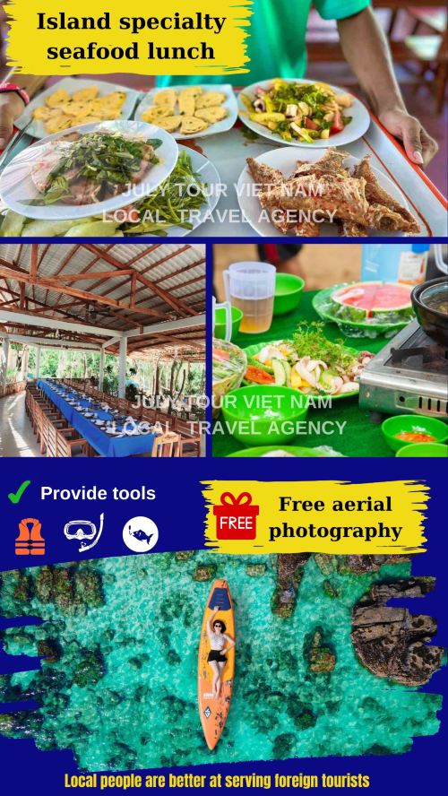 - 12:00: 到MAY RUT TRONG ISLAND 云退岛海滩上休息用午餐。餐后休息、自由观光。天气允许情况下赠送游客sup船航拍。