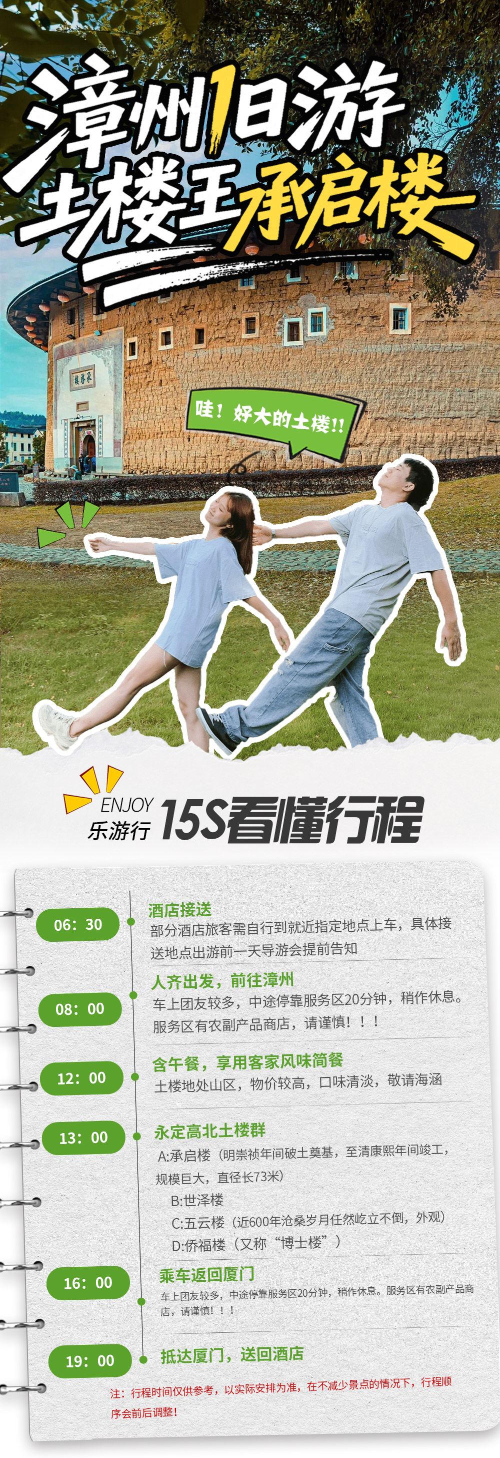 【行程安排】厦门出发——前往漳州——高北土楼群——承启楼——世泽楼——五云楼(外观)——侨福楼——返回厦门