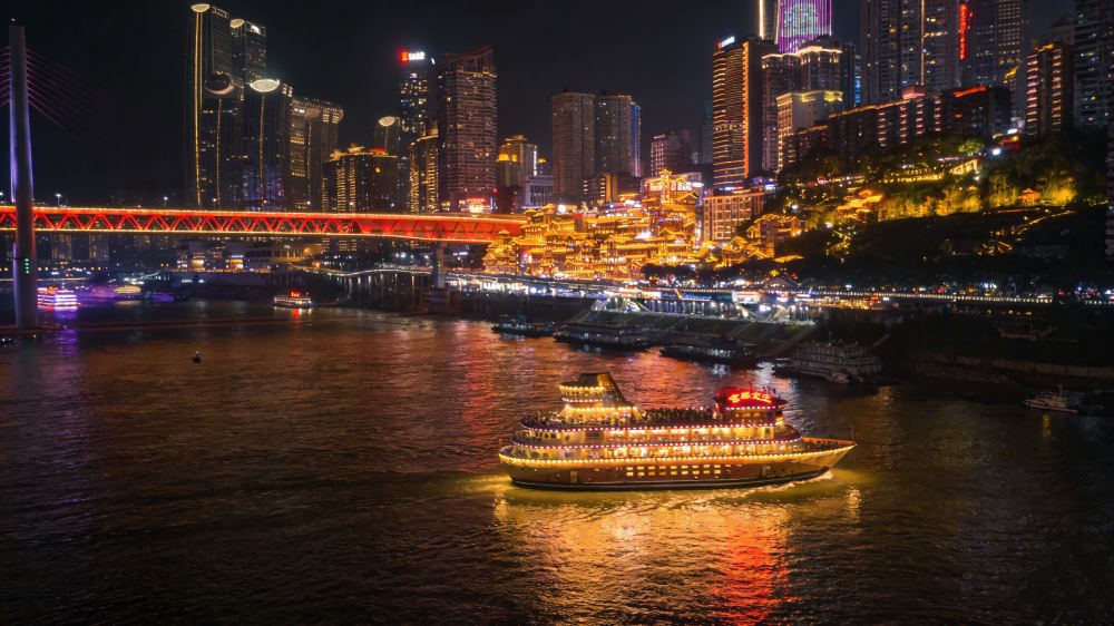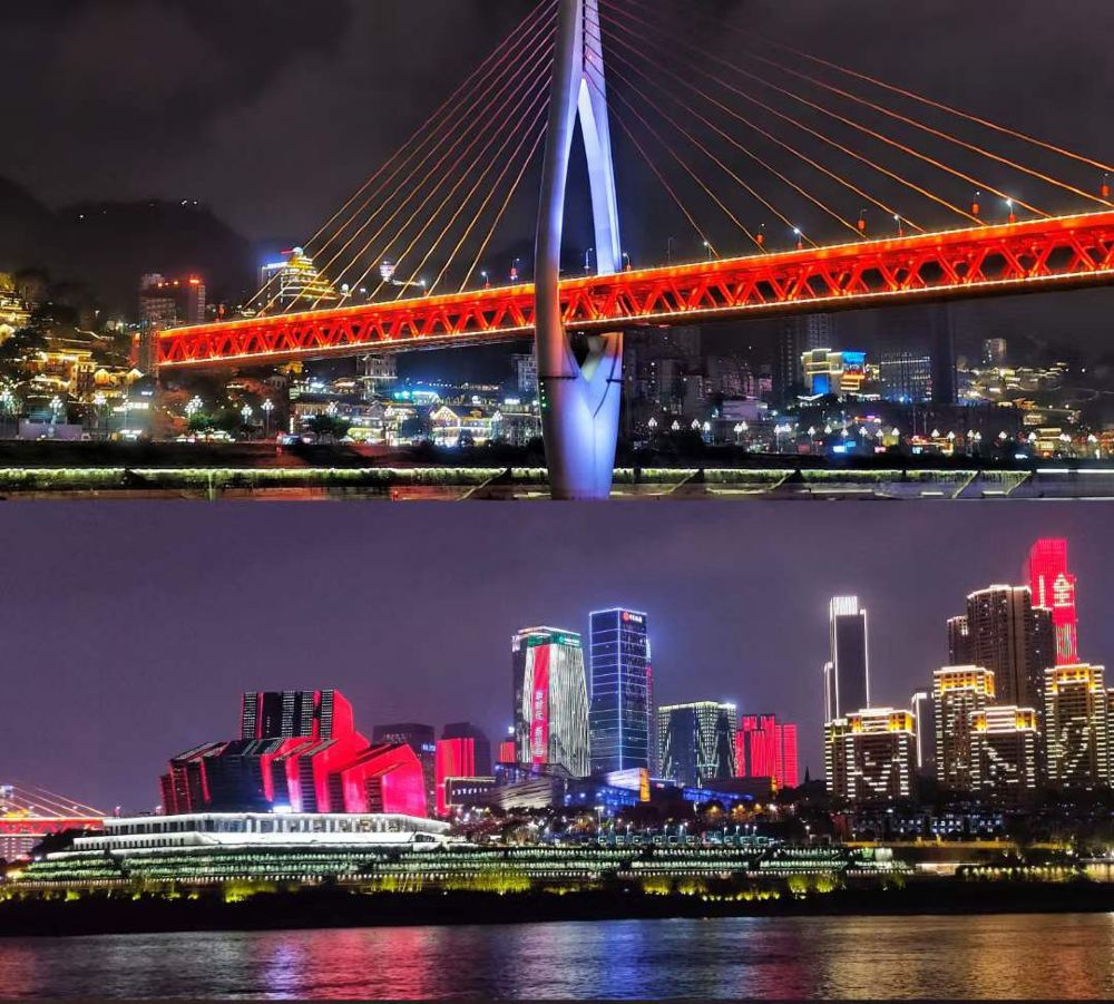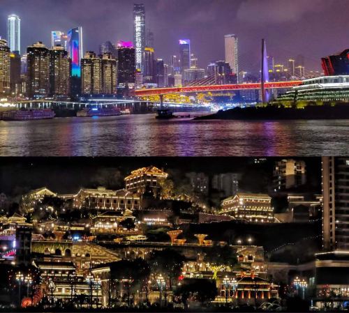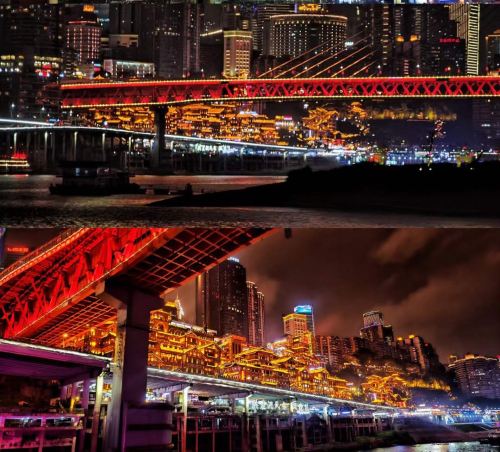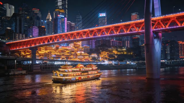 滑行经过洪崖洞与千厮门大桥,霓虹点缀的8D魔幻山城夜景尽收眼底