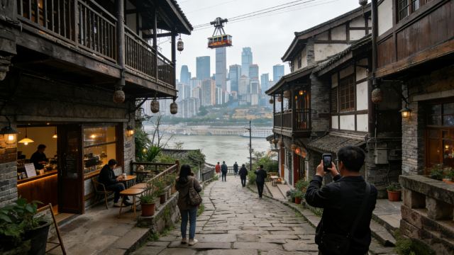 缆车站步行可达,历史街巷+天际线拍照打卡点,小吃/咖啡小憩(自由探索老街,晚餐自理)