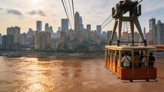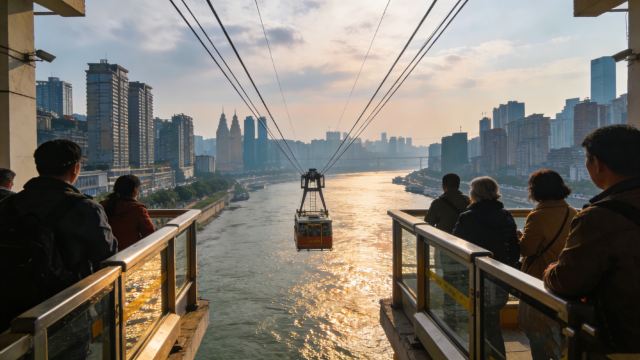 南岸至渝中骑行(6分钟),鸟瞰江景与城市天际线,避开人群