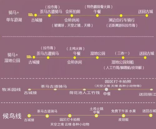 丽江拉市海茶马古道骑马划船湿地公园丽江千古情纯玩一日游【出发时间自由选择,不用再为早起烦恼】