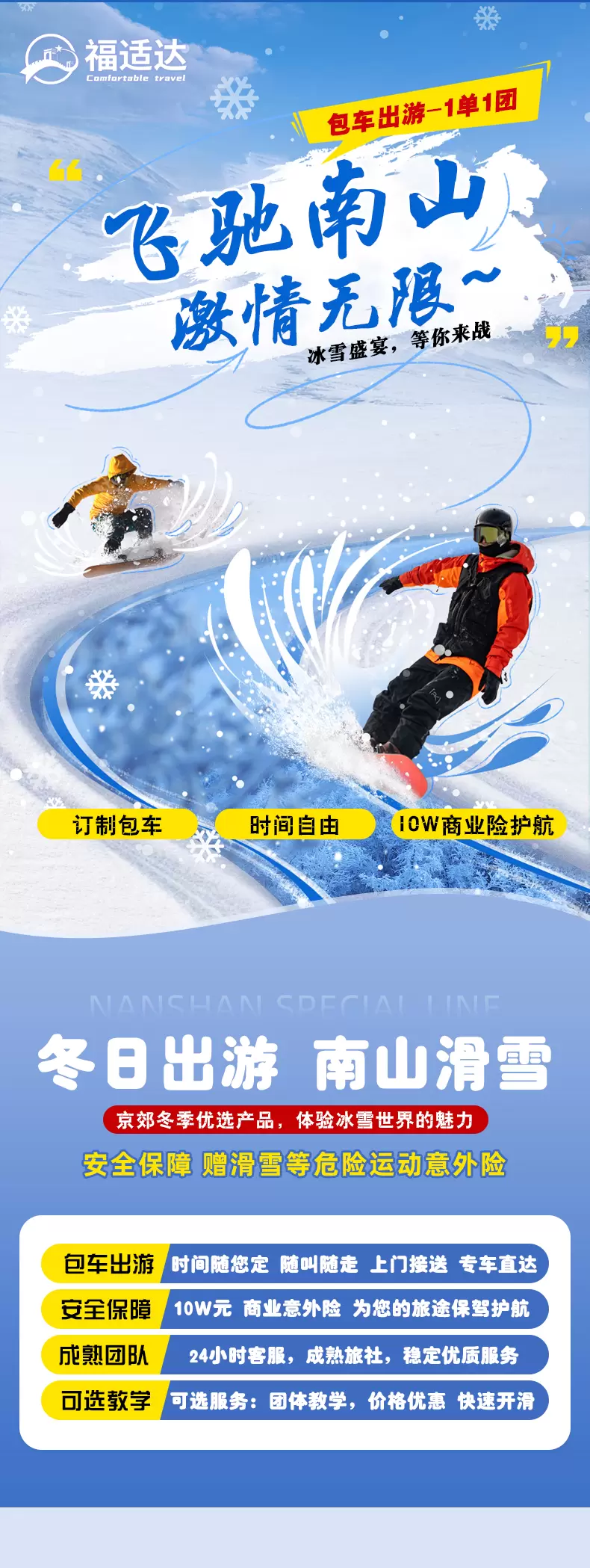 【包车游】北京南山滑雪场一日游◆赠送保险◆整车价格◆一单一团◆出发时间自由