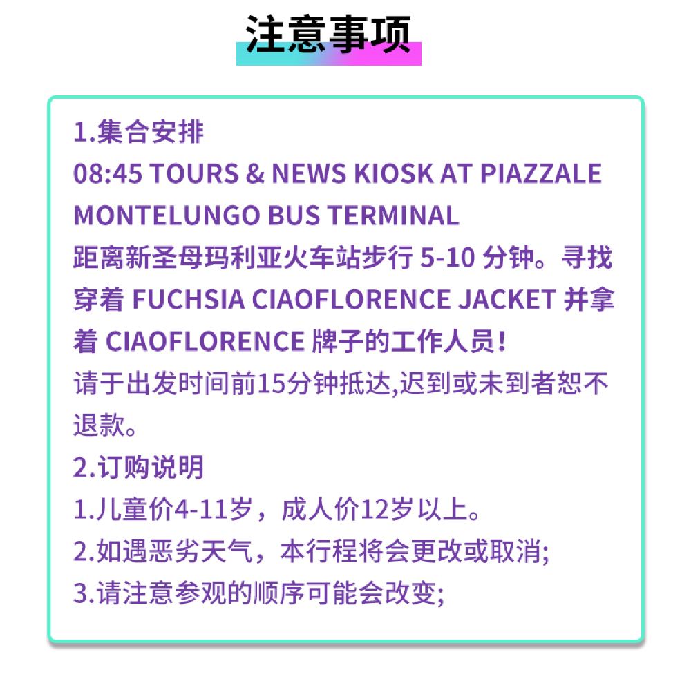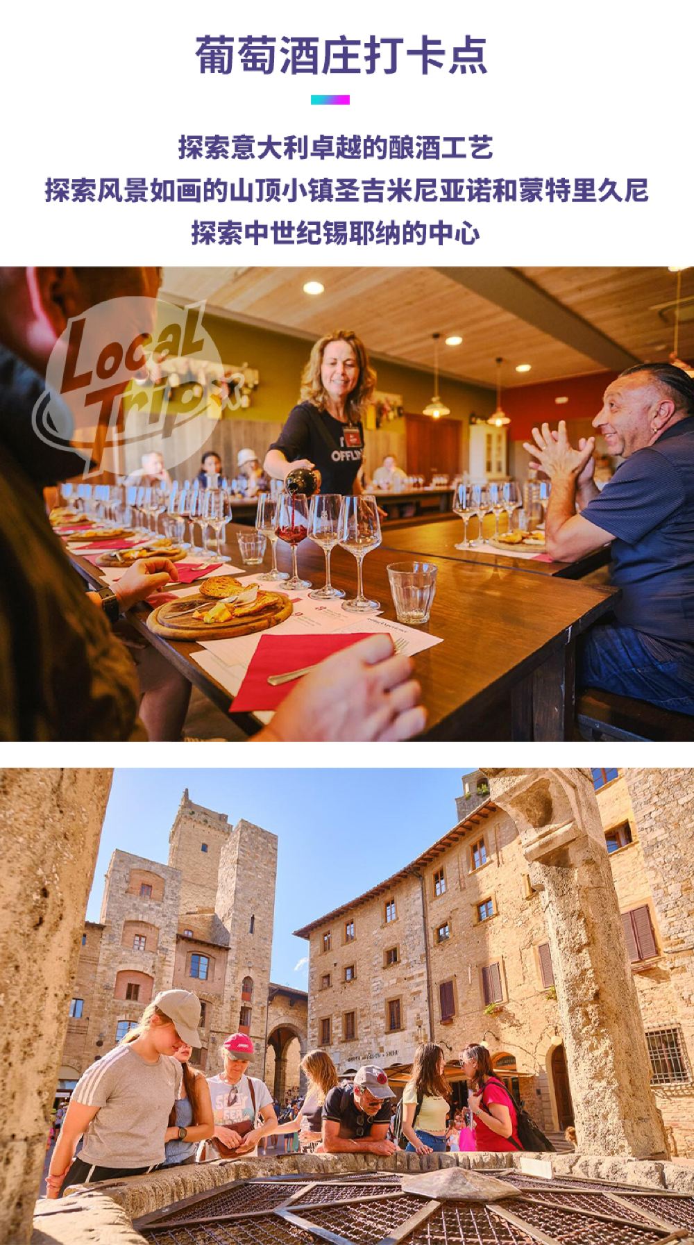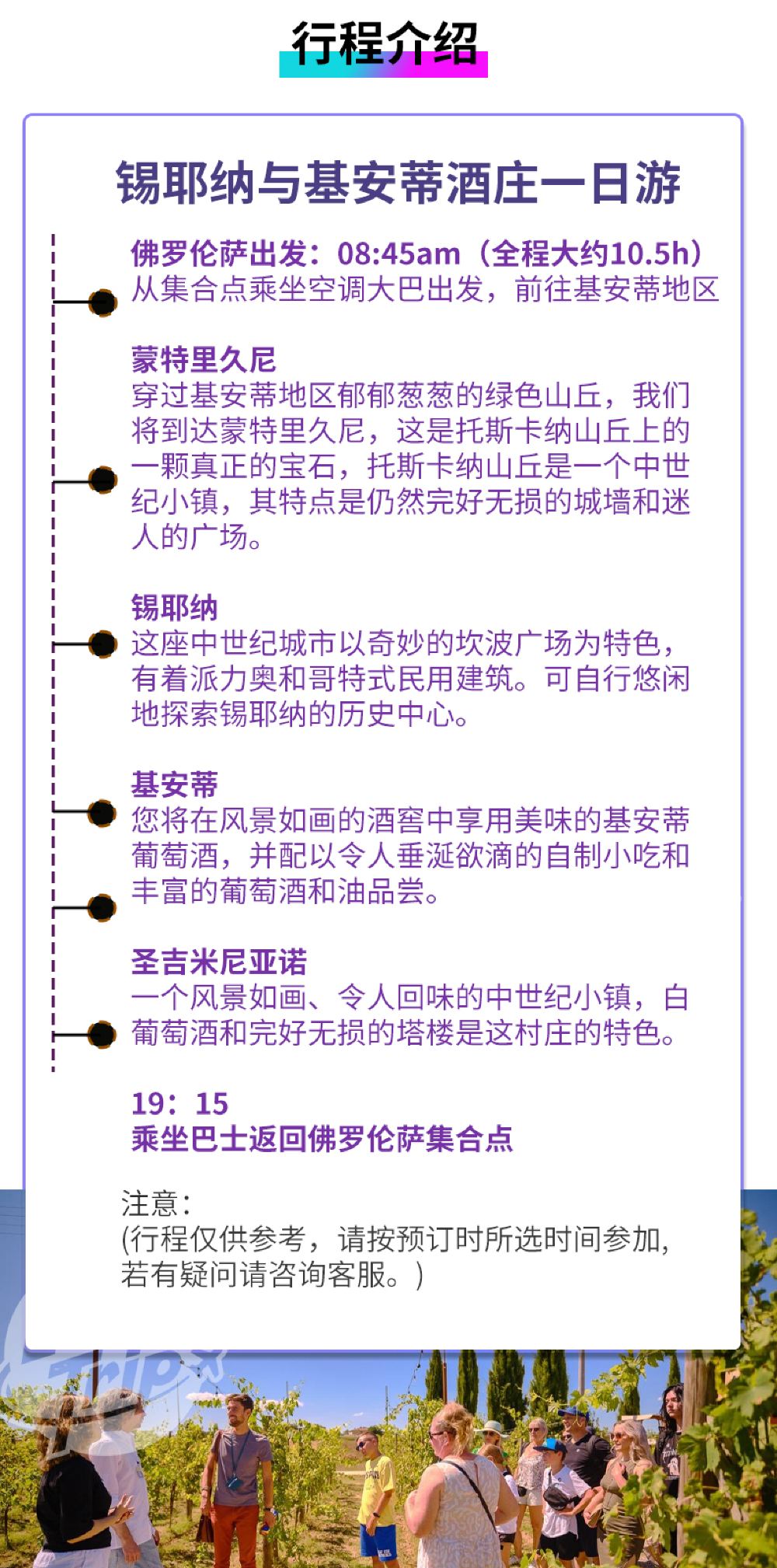 意大利佛罗伦萨出发一日游 锡耶纳 基安蒂葡萄酒庄 蒙特里久尼【享受空闲时间探索风景如画的山顶小镇圣吉米尼亚诺和蒙特里久尼】