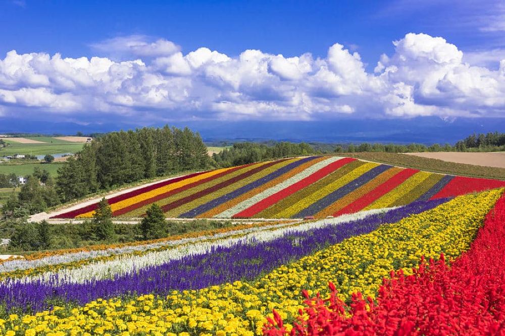 ▲ 2025/04/20~2025/10/31期间每周:周一,周三,周五,周日将前往四季彩之丘。四季彩之丘拥有面积达15公顷广阔美丽的花田,犹如一张七色彩虹般的地毯,季节不同,花样各异。 每年5月末至10月末,在起伏的丘陵上,郁金香、薰衣草、向日葵等30多种花卉竞相开放,远远望去,五彩缤纷,就像画家手中的调色板。花田内还有巨型的稻草人屹立着,非常可爱。此外,这里还养着几头羊驼,供游客参观和喂食