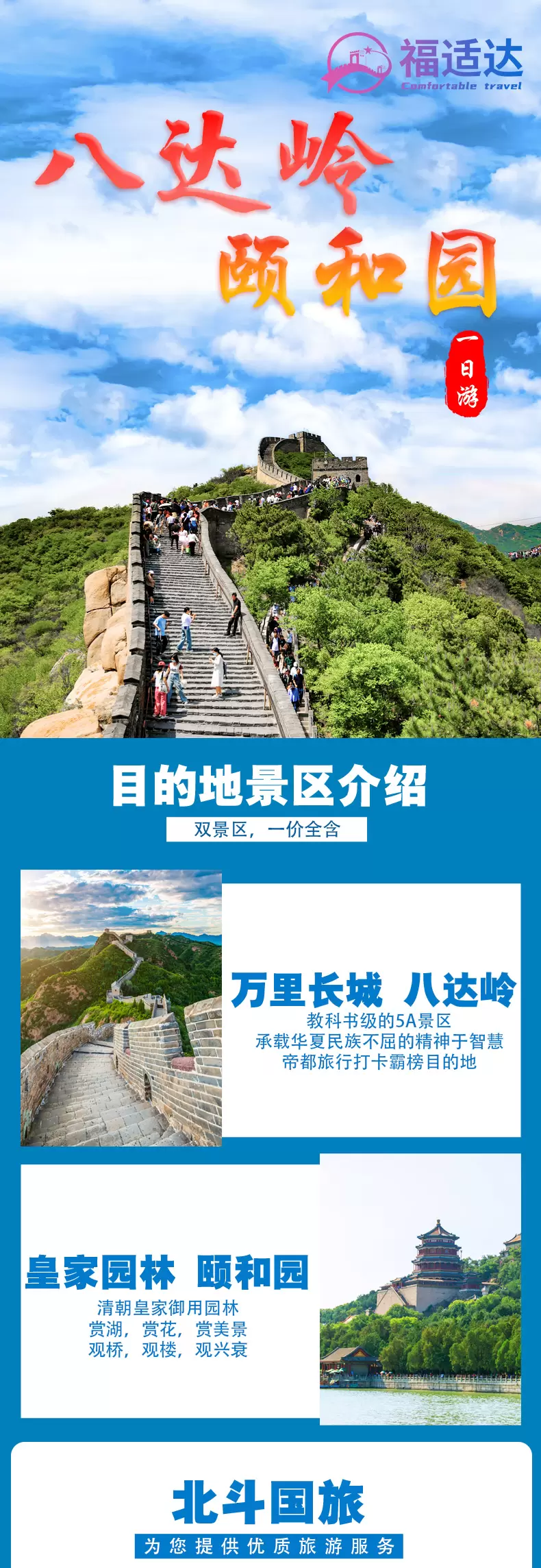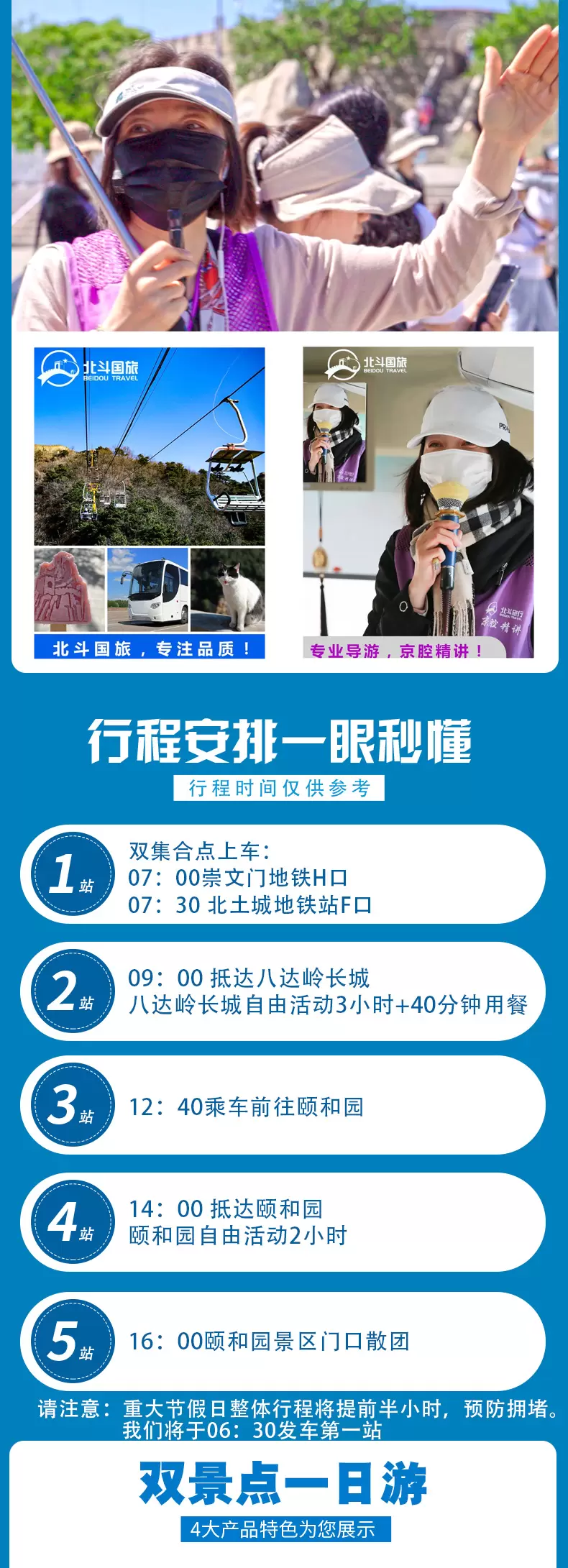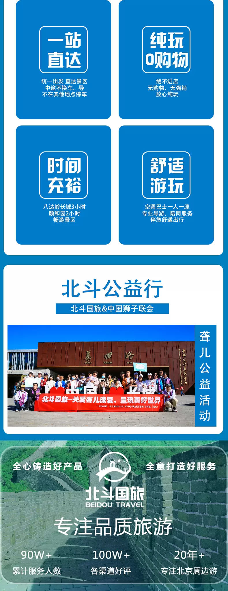 北京八达岭长城+颐和园一日游【10岁以下儿童免车费◆赠送保险◆特惠上门接◆舒适25人团◆纯玩无购物◆导游讲解】