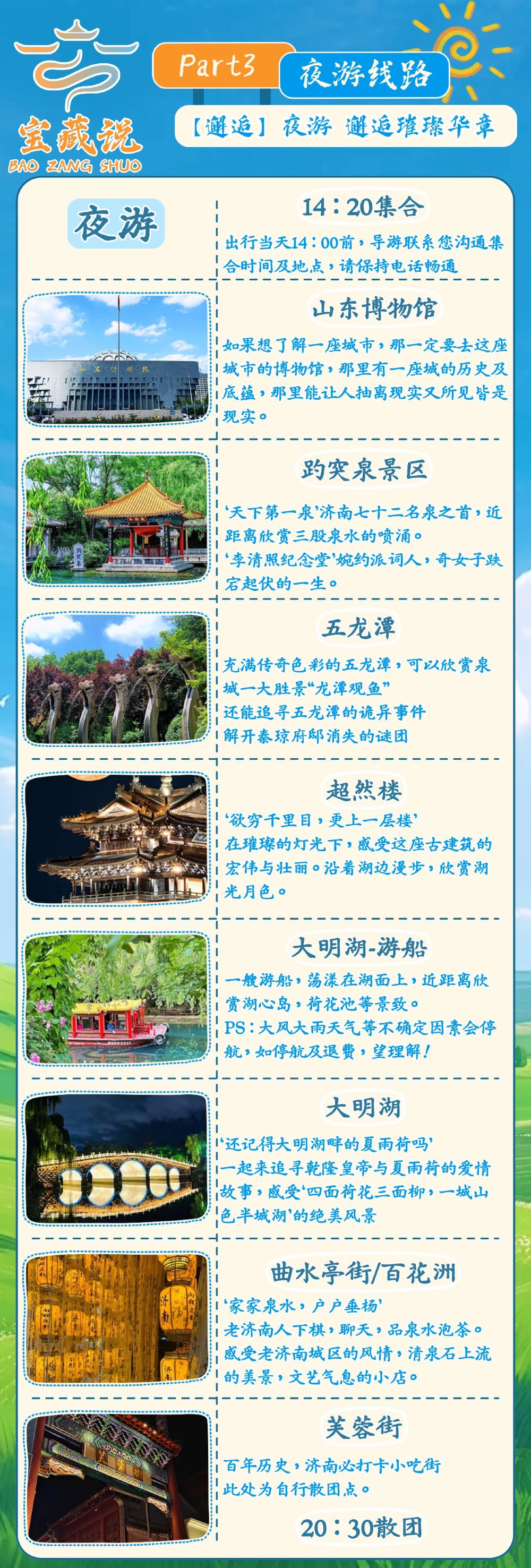 【温馨提示】如遇节假日因人流量较大堵车等因素可能会推迟或提前集合时间。具体以当天实际情况为准,敬请谅解!