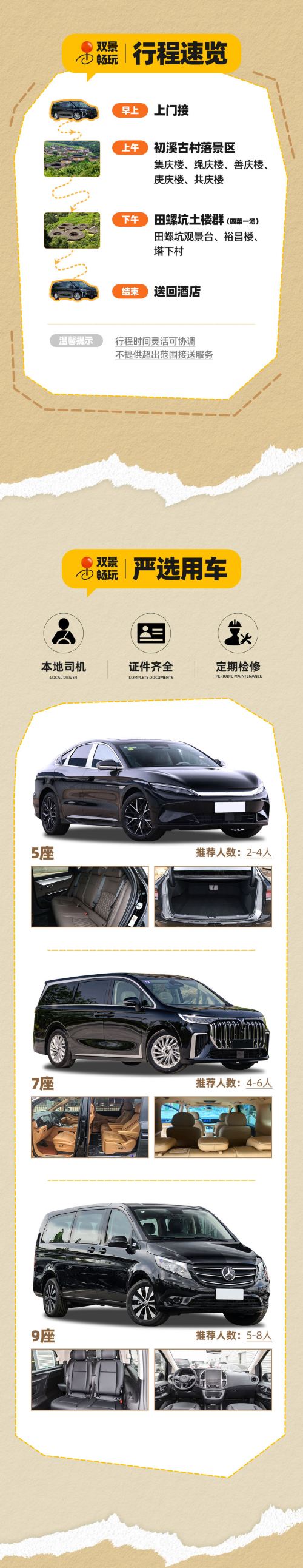 初溪古村落景区+田螺坑土楼群一日游【包车游+上门接送纯玩】【[玩法升级]包车游无需跟别人拼车,一台车一整天为您服务,上门接送!】
