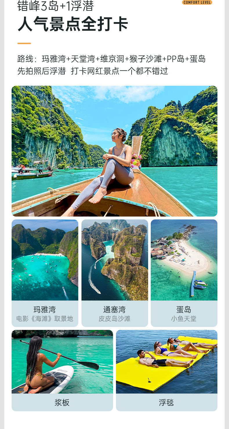 【懒猫自营天境号 赠美拍照片】普吉岛出海皮皮岛蛋岛一日游 浮潜/潜水/丰富水上玩乐项目蜜月岛玛雅湾