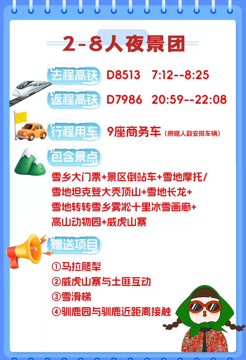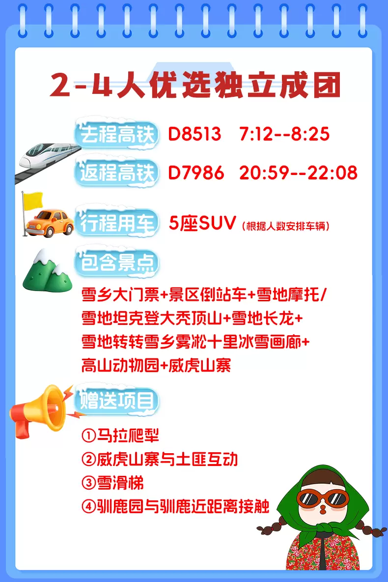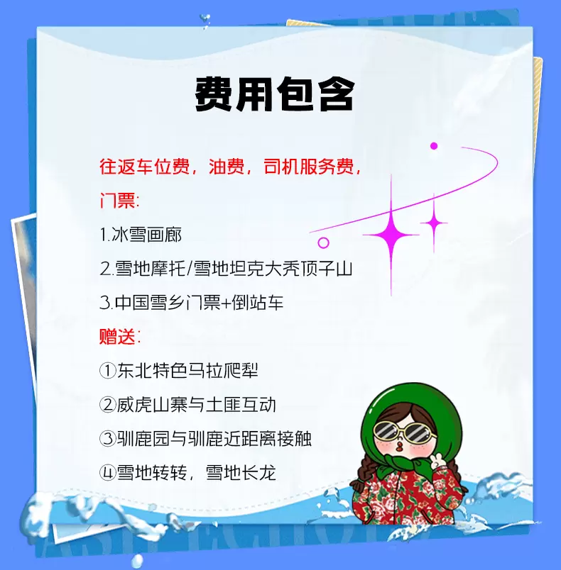 中国雪乡+雪乡雾凇十里冰雪画廊+大秃顶子山一日游【2-8人团●马拉爬犁●雪地摩托秃顶山+冰雪画廊●雪乡门票】